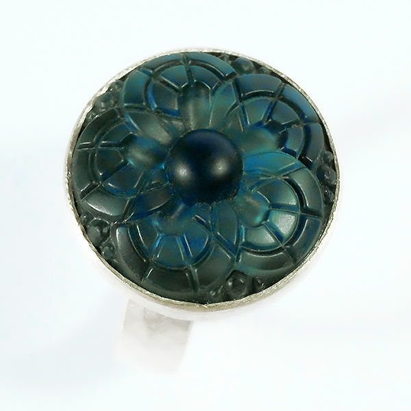 Tiefblauer Glasstein aus alter Produktion – ein seltenes Einzelstück wird zu einem prächtigen Ring · Ag925